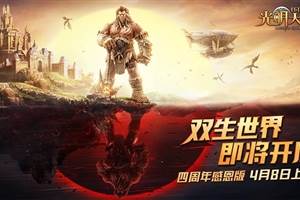 光阴荏苒,历经无数版本迭代和玩法更新,《光明大陆》即将与4月8日迎来第4周年庆典。本次周年庆主题将围绕“感恩”打造,在周年之际,为一直以来支持光明大陆的玩家送上超级大礼!周年版本预告:双生世界,与光同