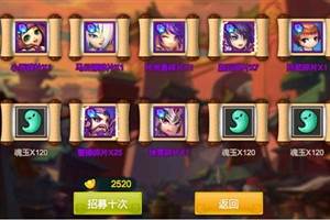 时间点击主界面左下角招募按钮(上图红框),进入招募界面。招募界面,消耗元宝购买一次或十次,可获得魂玉、武将碎片和道具。每次购买价值固定,并且保底可获得1个3星武将。