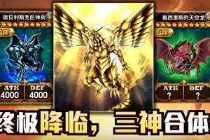 决斗之城太阳神之翼神龙是与巨神兵、天空龙并驾齐驱的3神卡之一。传说中只要凑齐【欧贝利斯克的巨神兵】、【奥西里斯的天空龙】、【太阳神之翼神龙】三张神卡,就可以君临决斗,问鼎巅峰!巨神兵和天空龙早已在游戏