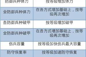 英雄系科技共分为六类七十五个技能,分别为:狂战士类、圣骑士类、神射手类、龙枪兵类、魔法师类、全英雄类。【狂战士类科技】狂战士类科技共有12项,分别为初、中、高三个级别的狂战士攻击/防御/体力/破甲科技