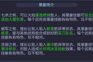 武将无疑是最主要的系统之一,游戏中有许多武将培养的系统,包含如下:武将基础属性,武将技能,兵种,星象,等级,进阶,突破,羁绊,神器,天赋,突破,专精,名将录等。基础属性:包含战斗属性与三维,战斗属性包