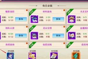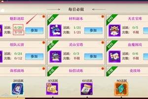 在御剑天下里,日常任务每天都有很多奖励,那如何才能玩转日常任务呢,下面和酷乐米小编一起来看看吧1.日常任务引导玩家参加各种活动2.日常任务完成后可以获得活跃度,根据次数来决定玩家可以从这个活动获得多少活跃度(参加了魅影迷踪3次,获得了6点活跃度)3.下方是活跃度的计量条,当玩家获得活跃度后,计量条就