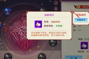 御剑天下有五种仙脉来让玩家升级,玩家可以从第一个开始升级起(还有一个要升级完前四个才能升级)下面和酷乐米小编一起来看看吧每种仙脉都有乾坤震巽坎离艮兑八种小脉升级,每当升级完一个小脉才能升级下一个小脉升级一个小脉需要升级十个脉点,而升级脉点需要仙脉残页升级脉点可以提升属性和战力仙脉残页可以通过通关血魔