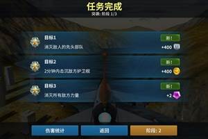 突袭、冰冻、夺回港口、群岛。每个任务有3个阶段,每个阶段为一个相应难度的关卡。游戏内每个任务显示的“已完成:0/3”即代表总共3个阶段,当前已完成第0个阶段。任务目标:每个阶段进入战斗后有3个波次敌机