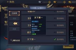 《天下长安》有16个称号,每个称号都能带来战力的提升,而且也是展示自己荣耀的标志。【初出茅庐】战力达到10W即可拥有,并增加属性。【超凡入圣】战力排行榜第一可拥有,攻击和暴伤都大幅增加,闪耀整个长安城