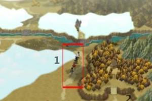 游戏界面解析:自由行动:该游戏和大多数日式RPG游戏相似,可以进行自由行动,自由行动分为两种。一种是在特定详细区域内(城池,探险点,特殊地点)自由行动,如图中编号1位置,靠近NPC,带队角色头上会有白