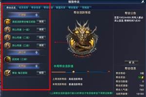 玩家加入帮会后,可以参加各种帮会任务与活动。1、每日签到帮会成员每日可在帮会仓库(153,113)处交接任务,可获得大量经验和15分钟双倍经验buff以及50点帮会贡献度。2.帮会活跃任务帮会成员每日