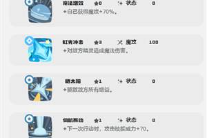 彩虹独角兽的属性克制体系还是比较清晰的,天生就会压制恶系精灵,幽系精灵。在实战的过程中,就可以轻松地应对主流游戏输出阵容,但需要注意的就是规避草系以及幽系。在对战的过程中,搭配能抗草系伤害的队友,就可以弥补这一个短板。他的技能池还是比较豪华的,光系核心输出就有泯灭,还有红光冲击。状态辅助更是比较全面