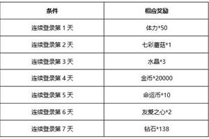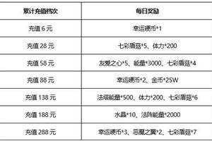 7月23日10:30开放新服:1、安卓434区帝国最强2、iOS105区学园教堂3、4.0官方双平台区:互通3区-狮王幻想活动1:7周年庆——净限时召唤活动时间:7月23日10:00:00~8月3日2