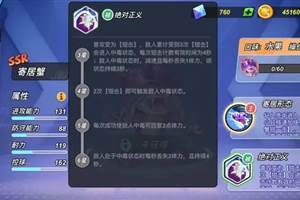 灌篮军团寄居蟹的被动技能【绝对正义】。它解锁了之后,三次普攻就能让敌人中毒,敌人中了毒之后会变得很慢,而且会失去一些血量,这样就能给对手带来很大的麻烦。到了四星,效果会更强,普攻两下就能让敌人中毒。虽然你可能会遇到一些高手,他们跳跃和冲刺都很厉害,可能就不容易让你触发这个技能,但还是可以找机会去使用