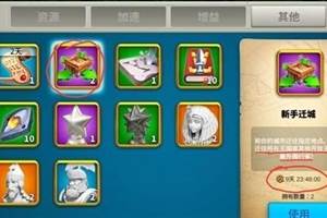 游戏里总共分为四种迁城,定点迁城、领土迁城、随机迁城,最后一种便是所谓新手迁城;新手迁城在十天或市政厅升至八级后自动回收,这个道具是只有在创号十天内才有的,可无视关卡在圈一内去任何你想去的地方,或迁城