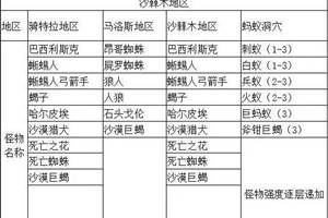 沙漠地区比较特殊,没有特别集中的刷怪点。怪物较分散,但是也根据地区有不同的怪物密集度区分。骑士与王族不推荐在此地区升级,不带补号要频繁解毒,怪物强度也不低,消耗大。带补号怪物又比较分散,需要一直操作两