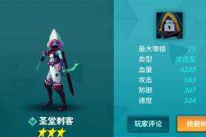 【圣堂刺客】介绍:来自于守序阵营,初始为3星,攻击型使徒。技能:1技能:高概率减防。2A技能:对血量越高的目标伤害越大;2B技能:为如果自身血量高于50%时,消耗当前血量10%以提高50%伤害,如果自