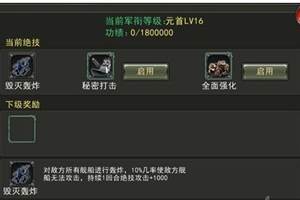 军衔轻松提升,全民冲刺“元首”!《决战大洋》功绩获取最全攻略,竞技场、港口争夺、护航……全方位的攻略让你急速成长,军衔绝技、高级将领马上到手!《决战大洋》中军衔共分为16个级别,最高等级军衔为“元首”