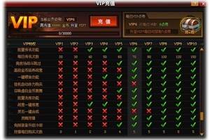 VIP概述:1.VIP功能的机制:玩家通过付费充值,即可获得vip增加经验,经验满足vip晋升需求,则vip等级对应提升。2.VIP等级的提升:玩家充值付费后,根据相应比例增加经验,达到vip晋升需求