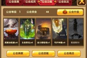 开启公会系统:各位勇士们进入游戏,完成第四章-4副本就会开启公会指引。此时玩家就可以花费5000创建公会争出自己的一番天地,可也以加入志同道合的公会享受游戏的乐趣!点击公会进入公会列表界面功能页面:公