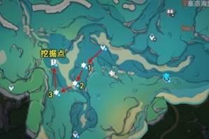 原神游戏的玩法都是很简单的,各种不同的区域都能够自由的尝试解锁,4.3秘宝迷踪第二天任务也是很精彩的,下面酷乐米网小编就来将详细攻略分享给大家,一起来往下看看吧。原神4.3秘宝迷踪第二天攻略第二天只有一个挖掘点和三处能量,需完成挑战才能拿到能量,获取后前往挖掘点挖掘即可,下图是位置总结;挑战一1、前