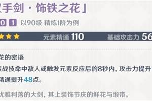 原神饰铁之花有什么被动?想必很多小伙伴都了解到原神即将在3.5版本上线新角色迪希雅,与此同时会同步上线新武器饰铁之花,不少小伙伴很好奇这个四星武器怎么样,一起来看看吧!原神饰铁之花技能属性一览双手剑·