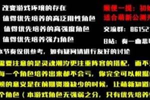 灵魂潮汐角色培养怎么选择好?《灵魂潮汐》游戏中有哪些角色值得培养呢?下面小编就为大家带来了《灵魂潮汐》角色培养节奏榜一览,希望能对大家有所帮助。《灵魂潮汐》角色培养节奏榜一览注:需要注意的是灵魂潮汐更