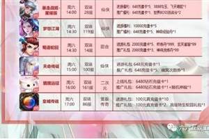 《白蛇仙劫》14点新区《暴走战姬》15点新区《皇城传说》17点新区