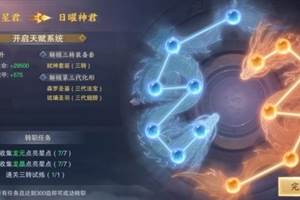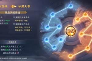 天赋系统:在上仙等级达到350级时将会提前开启天赋系统界面,上仙们可以预先了解各类天赋的具体加成,选出最佳的搭配方案。完成四转后,即可立即获得10点天赋点数,此后每次提升等级,即可获得1点天赋点数,用
