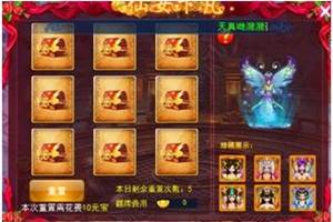 仙女下凡玩法:每天花费一定元宝即可抽取各种日常道具,每轮第一次免费。每轮抽完必定仙女之玉(合成新仙女幻化卡)每天最多可花费元宝重置活动5次。每日0点重置活动。珍贵奖品:龙神八器礼包,宝宝玩具,520玫