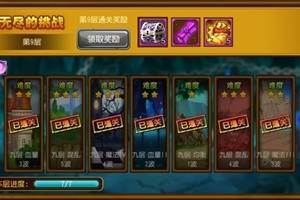 无尽的挑战玩法介绍1.无尽的挑战一共为10层。每通过一层都会获得丰厚的奖励。2.每层奖励需完成当前层每一个小关。3.完成当前层全部小关后可进入下一层。4.左、右方向箭头可用于切换层数。5.每一层都由7