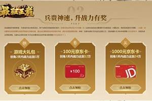 活动时间:2020年5月12日~2020年5月18日活动内容:活动期间,累计充值到一定档位可领取相应奖励累计充值1000元:A:黄金沙漏10,任选辎重20,急速行军10,黄金募令10累计充值2000元
