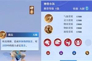 梦幻新诛仙神兽小灰技能怎么带?神兽小灰得培养吗?来看看小编带来的梦幻新诛仙神兽小灰全面评价。对于游戏前期来说,神兽的资质无疑是非常顶级的,到了中后期,也算得上中上水平的资质。神兽小灰的1技能,可以用来
