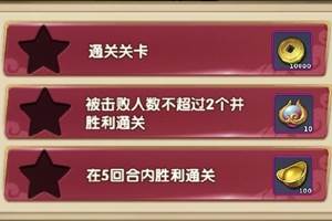 作为《无敌OL》一个产出大量道具和元宝的玩法,过关斩将仅对30级以上的玩家开放。与普通关卡不同,过关斩将玩法需要的策略性更强,因为,通关需要的条件每一关都是不一样的。玩家首次通关时,可获得对应星等的奖