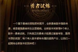 弹弹堂3勇者试炼副本应该怎么通关呢?7.7新版勇者传说即将开启了,新增勇者试炼、活动副本、神卡募集、招财神活动,弹弹堂3十一月全新版本更新内容大揭秘。【勇者试炼】一个属于勇者的冒险即将展开,全新勇者副