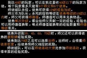 拜见师傅:当角色到达10级时,系统将根据当前的情遍九州的寻徒列表中的人数,按一定规则分配师傅。按下F10键打开社会关系界面,就可以看到你的师傅了。除了可以看到对方的一些信息外,还可以直接通过社会关系界