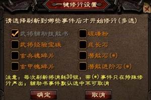 需要等级:≥45级当武将拥有修行点时,玩家可以在武将修行大师处进行修行,修行将获得战器、法宝、终极成长石、潜能进阶石、潜能成长石、月光宝盒等修行独有物品。如何获得修行点1.在修行历练副本中获得:当玩家
