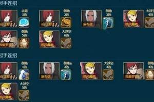 阵容配置通灵上小蛇分析:丁次不是必须的,丁座也可以。只要技能给手鞠连得起就行。第一关,忍者手鞠第二回合奥义清盾,凯奥义赤土,赤土没死也没事。然后每回合用丁次奥义触发追打,把手鞠被动触发,这样提升忍术,