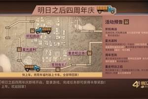 明日之后四周年庆,超多惊喜活动开启,登录游戏,完成任务,就可获得丰厚奖励!折扣商店折扣商店限时开启!永久限定时装、珍稀家具礼包,改名卡等丰厚奖励免费兑换!参与生存之星、绝对人气活动即可获得最高1000