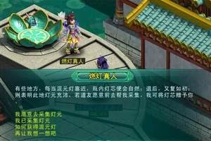 玩家获得混元灯,找NPC领取任务,NPC让玩家去各个地图使用混元灯采集灯元,随着混元灯的颜色不一样,需吸取灯元的地点会增加,收集好后,交给NPC,则给予相应的奖励(每天可交纳5个混元灯任务)。混元灯:
