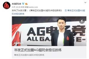 7月19号晚上,AG超玩会官方微博惊现一条爆炸性消息:寒夜正式加盟AG超玩会担任教练!消息传出,AG超玩会的银宝们炸了,寒夜的粉丝们也炸了,各大战队的粉丝们也都对此事议论纷纷!作为王者荣耀KPL职业联