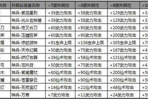 仙侠六档神甲神器百炼升级后附加属性表