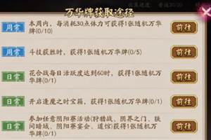 阴阳师中万华卡集作为近期新推出的活动,很多玩家都在收集里面的卡,那么阴阳师万华牌怎么获得?感兴趣的小伙伴,快来看看阴阳师万花牌抽取概率及购买建议吧一、免费获取途径1、日常任务完成每日指定任务(如每日活…